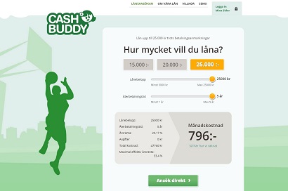 Cashbuddy är en fantastisk låneförmedlare som erbjuder mycket enkla lån utan någon som helst säkerhet. Det lån som man kan ta idag är upp till 25 000 kronor. Det som är så unikt med Cashbuddy är att man är intresserad av din egen framtida betalningsförmåga och därför kan man kort och gott säga att dina tidigare betalningsanmärkningar inte kommer utgöra något hinder när man försöker att låna pengar av Cashbuddy.